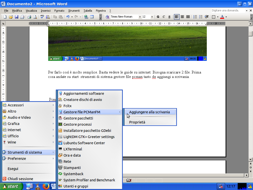 Se invece volete farlo uguale a xp allora dovete procedere così: è molto semplice; Bisogna scaricare 2 file. Prima cosa andate su start strumenti di sistema gestore file pcman tasto dx aggiungi a scrivania. Così vi trovate l’icona di questo programma sul desktop.