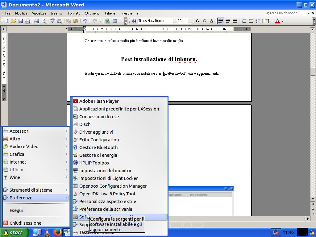 Da tutto. Dai forum da linux e da tutto il resto. Obbligate e ripeto obbligate coloro che rispondono nei forum agli utenti a dare risposte solo in modalità grafica. Tramite i forum fate pubblicità a linux. Ma se il vostro marketing inizia con “apri il terminale e digita sudo apt-get” beh mi pare proprio che state messi molto male. Altrimenti cari programmatori e appassionati linux il vostro è solo tempo sprecato. Le percentuali di diffusione di linux resteranno sempre intorno all’ 1 massimo 2 per cento. Sono percentuali ridicole. E per me sono pure alte. Praticamente lavorate e lavorerete per un s.o. che rimarrà solo a voi. Andatevi a fare delle belle passeggiate piuttosto che perdere tempo a lavorare gratuitamente per un sistema operativo che non userà nessuno. Ma il vostro non sarà più tempo perso se eliminate l’obbligo dell utilizzo del terminale. Se lo capite bene altrimenti contenti voi. Quando vedo le risposte date nei vostri forum ai nuovi utenti che passano o vorrebbero passare da microsoft a linux mi viene da ridere. Comandi assurdi da digitare nel terminale. Fino ad oggi ho usato 4 sistemi operativi. Il Symbian sul mio amato nokiotto. Poi microsoft xp. Poi android. Poi windows 7. MAI E DICO MAI HO AVUTO BISOGNO DEL TERMINALE. Non sapevo ne cosa fosse ne della sua esistenza. Su symbian e android non ce. Infine linux-lubuntu cioè il 5. Cazzo. Solo ora mi sono reso conto non solo dell esistenza del terminale ma anche dell esistenza del terminale anche su microsoft. E si chiama c:prompt dei comandi. E chi l’ha mai aperto. E come me penso la quasi totalità di coloro che usano microsoft. Se andate sui forum microsoft o cercate delle risposte su internet per risolvere un problema su un so microsoft il prompt dei comandi è una bestemmia. Non ce. Non esiste. Invece con linux prima del so ce il terminale. Invece di chiamarlo linux allora chiamatelo terminal s.o. Fate mille distro con mille nomi diversi ma in reltà non sono nomi ma cognomi appellativi aggettivi perché il nome che le accomuna tutte è terminal.s.o. Non esiste ubuntu o fedora o debian. Ma terminal s.o ubuntu, terminal s.o fedora e così via. Che poi se anche la parola terminal la abbreviamo a T. esce fuori T.s.o. che per un giro di parole mi sembra indicativo della realtà. Sono da T.s.o. coloro che sperano che gli utenti microsoft passino a linux insistendo con le procedure da terminale. Sono da T.s.o. coloro che a riguardo delle basse percentuali di diffusione di linux se ne escono con la t.s.o.frase “pochi ma buoni”. E sono da doppio triplo e quadruplo e sempre più T.s.o. intensivo e frequente coloro che nei forum linux dicono agli utenti delusi da linux a causa del terminale “se non ti piace il terminale resta con windows”. E sono da ancor più T.s.o. coloro che, in maniera diretta o in maniera al contrario indiretta nascosta subdola e ipocrita, non vogliono e non sperano che gli utenti microsoft passino a linux. Ma io dico: avete avuto l’esempio sotto agli occhi con android. Cosa volete di più per capire quale è la strada giusta da percorrere? In android il terminale non ce. Ma cosa avete davanti agli occhi e nel cervello? Prosciutto formaggio e merda? Google in pochi anni ha fatto ciò che voi non siete stati in grado di fare in tanti anni. Le risposte nei forum ai problemi degli utenti android e microsoft si risolvono tutte in modalità grafica e cosi deve essere anche nei forum di linux. Dovete eliminare il terminale dal s.o. A volte penso che siate d’accordo con microsoft. Perchè non ci credo che non ci arriviate a capire dove sta il problema di linux. E voi dopo anni e anni di lavoro inutile ancora non ci arrivate a capirlo. E allora sarete pure degli esperti programmatori e appassionati ma per il resto o ne capite meno di un bambino appena nato o amate inconsciamente microsoft alla follia senza dirlo e senza saperlo oppure non lo amate ma per qualche oscuro motivo (money?) di cui non sono a conoscenza fate di tutto per favorire microsoft. Io con questa guida voglio dare un piccolo contributo a linux. Ho fatto tutto senza righe di comando. Ma attenzione sono dovuto partire con sudo apt-get update e sudo apt-get upgrade. Perchè così mi indicavano le guide e i vostri forum. Questa è la pubblicità che i vostri forum fanno a linux: sudo apt-passa a sto ca..o. Ma come pretendete che un utente microsoft passi a linux se già per le cose più stupide deve usare il terminale? E’ tutto ridicolo. Se ho fatto questa guida è perché da solo a poco a poco mi sono reso conto che si può fare tutto o quasi senza terminale. E invece voi insistite con sudo e minchiate simili. Rinsavitevi perché se le possibili cause della vs possibile perdita di intelletto non sono riconducibili a quelle dette poc’anzi ho l’impressione che il troppo utilizzo del t.s.o. vi abbia fatto male e continui a farvi male. Questa guida è un piccolo contributo per dire che si può. Molto probabilmente anche io con questa guida ho sprecato del tempo. Ma in quel mare magnum e infinito di sudo apt get install remove dpkg etc,che per me altro non sono che delle “espressioni di masturbazione mentale” di chi vuol dire agli altri “guarda io ne capisco di computer e tu non ne capisci un cazzo ”, forse una guida come la mia a qualche cosa o a qualcuno potrà servire.