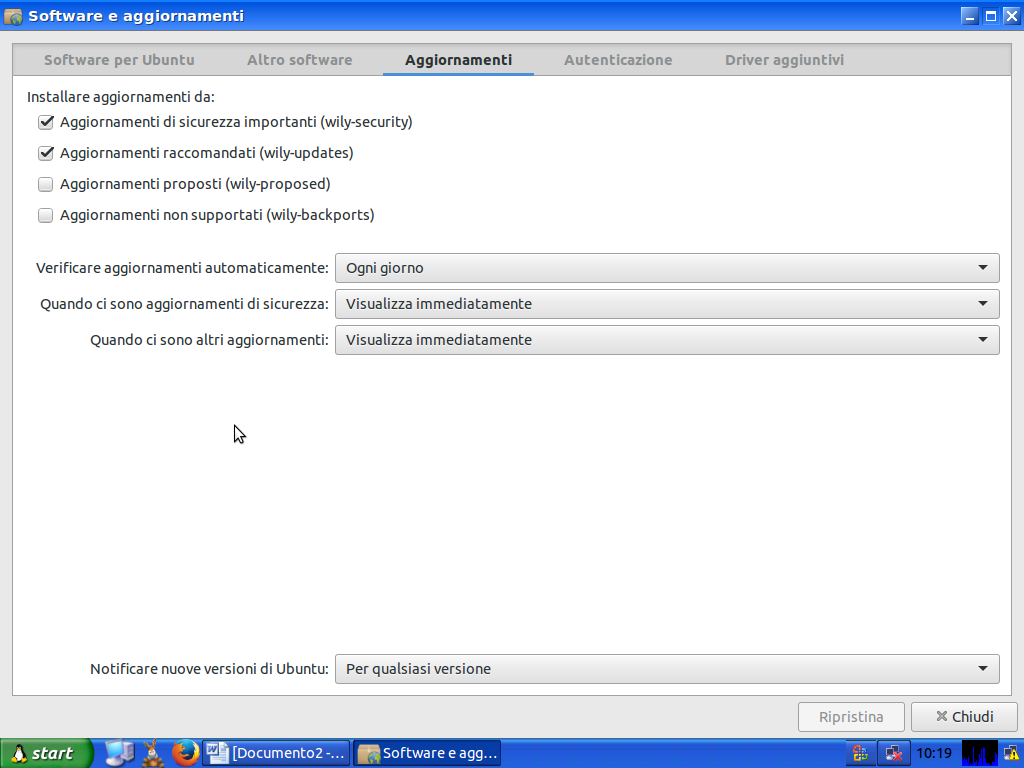 Accertatevi che le spunte e gli avvisi degli aggiornamenti siano tutte impostate così.