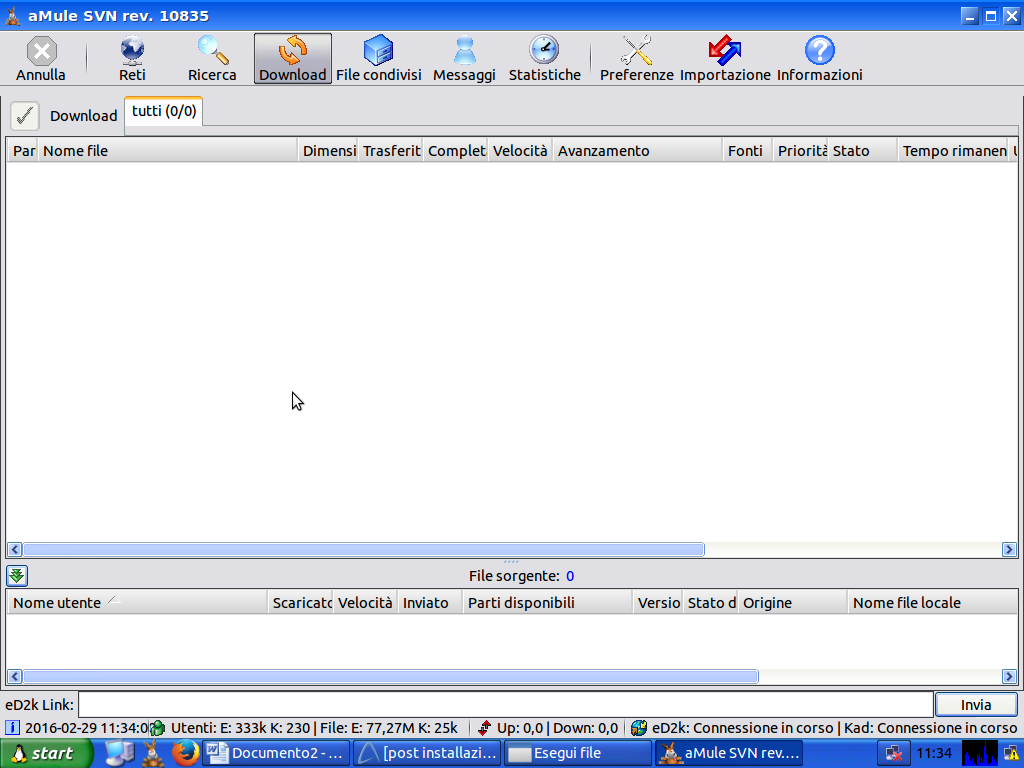 Dal lubuntu software center potete installare molti programmi tra cui Amule (è l’emule di linux). Questa è una schermata di amule.