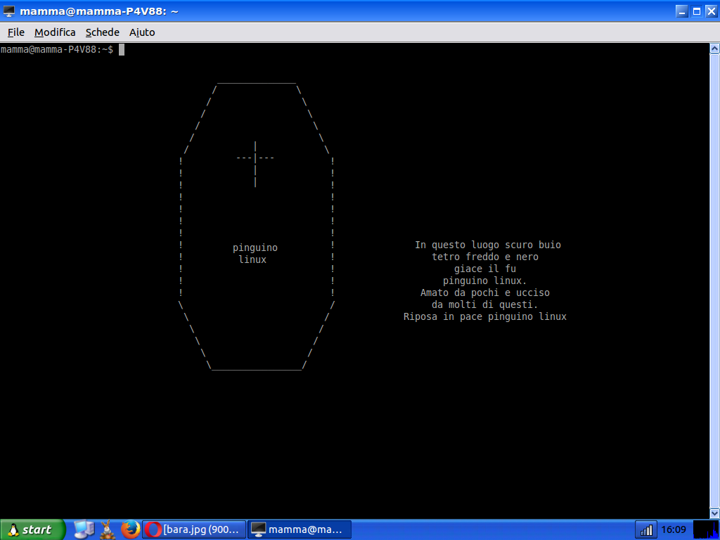 Qui in questa pagina buia e nera giace il fu pinguino linux amato da pochi e ucciso dagli stessi. Riposa in pace.
